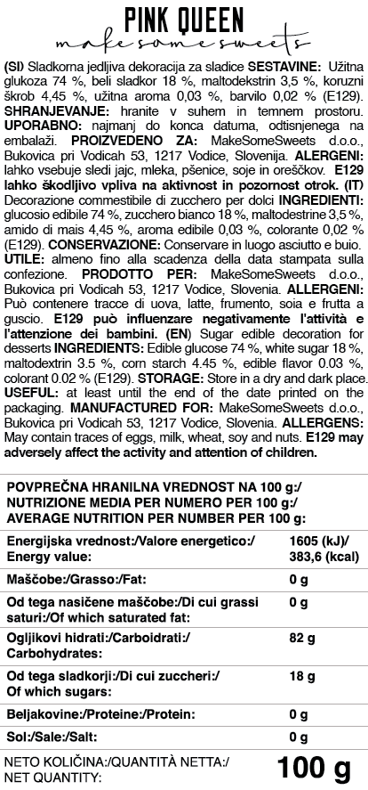 VYROBENO PRO: MakeSomeSweets d.o.o., Bukovica pri Vodice 53, 1217 Vodice, Slovinsko.